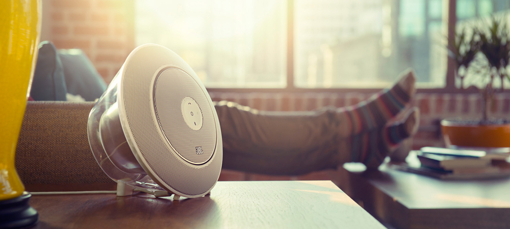 Il fallait trouver un concept 2-en-1 pour allier le plaisir d’un son puissant à la maison au plaisir de se déplacer avec son enceinte en extérieur. JBL a alors créé la Voyager. Sur son design, et dans sa version blanche, on apprécie beaucoup le caisson de basses arrières sous son dôme de Plexiglas. On apprécie aussi le système d’accroche du socle centrale sur la base. D’un doigt, sans forcer, vous pouvez détacher le socle et passer en mode nomade. Malheureusement, la puissance n’est pas là et la voyager en mode nomade ne rivalise pas avec l’enceinte Pulse de JBL. C’est dommage. Néanmoins, le concept est fort intéressant et présage d’autres très beaux produits dans un futur proche.
