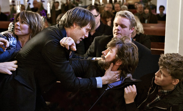 Après un divorce difficile, Lucas, quarante ans, a trouvé une nouvelle petite amie, un nouveau travail et il s’applique à reconstruire sa relation avec Marcus, son fils adolescent. Mais quelque chose tourne mal. Presque rien. Une remarque en passant. Un mensonge fortuit. Et alors que la neige commence à tomber et que les lumières de Noël s’illuminent, le mensonge se répand comme un virus invisible. La stupeur et la méfiance se propagent et la petite communauté plonge dans l’hystérie collective, obligeant Lucas à se battre pour sauver sa vie et sa dignité.