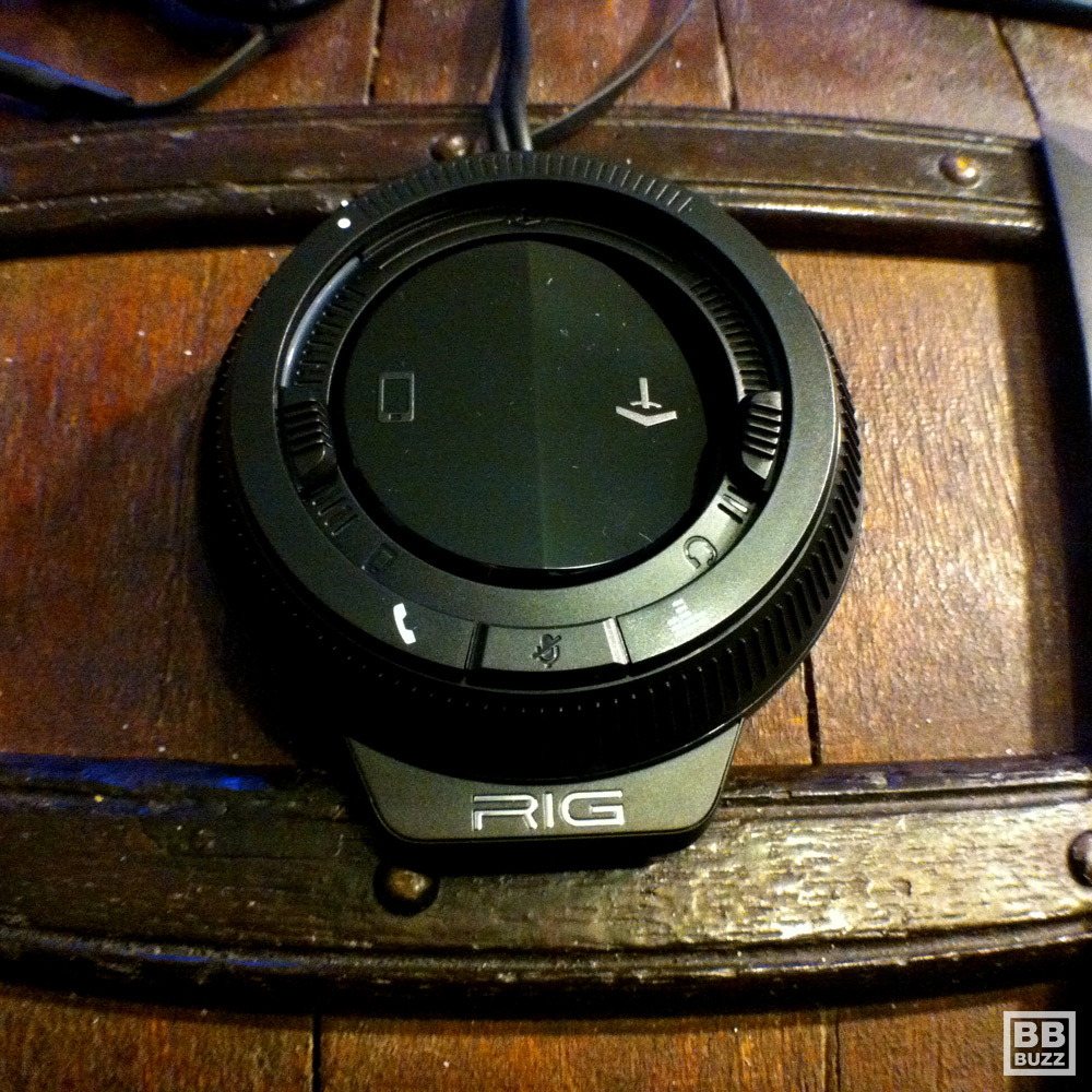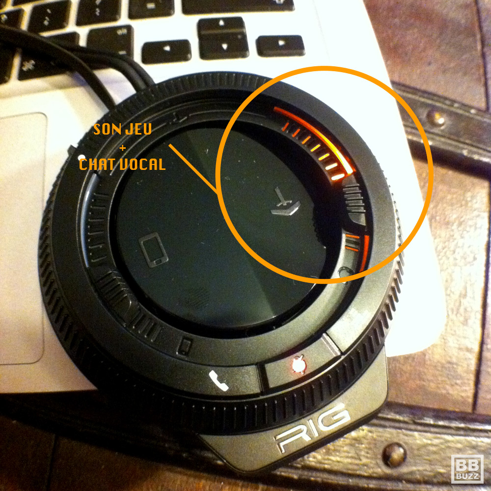 Le principe est simple. Le casque RIG est vendu avec une sorte de mini table de mixage. A celle-ci, vous pouvez brancher deux sources et switcher de l’une à l’autre, de façon complète ou partielle grâce à des jauges de volume. Ainsi, vous pouvez être connecter d’un coté à votre PC ou votre console et de l’autre à votre téléphone ou lecteur mp3. D’une simple pression sur l’interrupteur, vous passez de l’un à l’autre! Simple! Des boutons sur le « mixer » vous permettent de couper le micro, de décrocher et raccrocher et de switcher sur l’un des 3 modes d’équalizer (pure, intense et explosive).