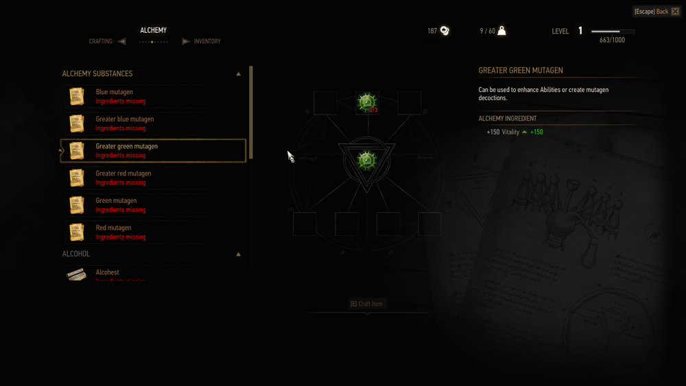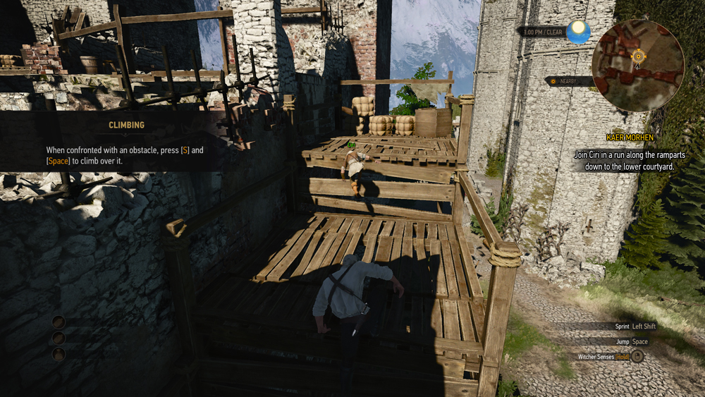 Les graphismes et le son c’est pour les kikoos, ça fait pas un bon jeu ! C’est peut être vrai, mais heureusement « gameplayement » parlant (oui ce mot existe 🙂 ) The Witcher 3 semble faire au moins aussi bien que son ainé. Le système de combat est assez similaire mais semble plus fluide, plus riche. On dispose de tout ce que l’on est en droit d’attendre d’un chasseur de monstre aguerri : Attaque rapide / lente, roulade, esquive, sortilèges, pièges / bombes… C’est très nerveux et le challenge à l’air d’être au rendez-vous (nous avons joué avec l’avant-dernier niveau, on est pas maso non plus !). J’aurais juste un tout petit bémol : Hors combat les déplacements nous ont paru un chouilla trop rapides et par conséquent un peu imprécis par moment mais on s’y fait quand même (et c’est peut être mieux avec une manette ?). La prise en main ne pose pas de soucis car on a le droit à un tutoriel la aussi bien intégré qui nous enseigne les bases (je vous conseille d’ailleurs de le faire puisque qu’il complète le scénario). On retrouve toujours l’alchimie qui permet de fabriquer potions et autres bombes à partir d’ingrédients achetés ou lootés. Le jeu se dote d’un arbre de talents que nous n’avons pas encore pu bien exploiter et la montée en niveau de Geralt se fait toujours avec de l’xp. Bref, plutôt normal sur ce point là. À noter qu’une option de « fast travel » est également présente (attention le jeu ne force personne à s’en servir alors ne râlez pas).