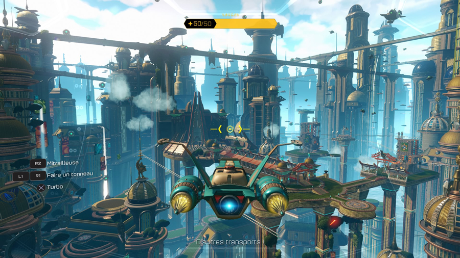 Enfin le gameplay, point crucial de tous les jeux, est ici parfait ! Très grand utilisateur du « Rage-Quit », j’ai été surpris de découvrir sur Ratchet & Clank que je n’en faisait pas… La difficulté est ici suffisamment bien pensée pour que vous puissiez venir à bout de n’importe quel boss en 2-3 essais. Donc plus de « Rage-Quit » et pas de sensation de difficulté extrême ou même trop simple. On avance à bonne vitesse, d’un monde à l’autre sans voir le temps défiler. Il est très rare que je termine un jeu car je me lasse très vite. Hors, avec Ratchet & Clank, j’ai toujours envie de continuer ou de lancer le jeu. Une petite demi-heure à tuer ? « Ah vite ! J’ai le temps de me faire un peu de Ratchet & Clank ! ». De plus, une fois le jeu terminé, hors de question de s’arrêter là et de ranger bien sagement le jeu dans un tiroir. Vous avez la possibilité de revisiter tous les mondes et les niveaux pour débloquer les bonus inaccessibles au départ, booster vos armes à fond, augmenter la difficulté, utiliser les « Cheat-Codes » pour personnaliser votre personnage ou modifier le jeu. Bref, encore de nombreuses heures de jeu pour notre plus grand plaisir.