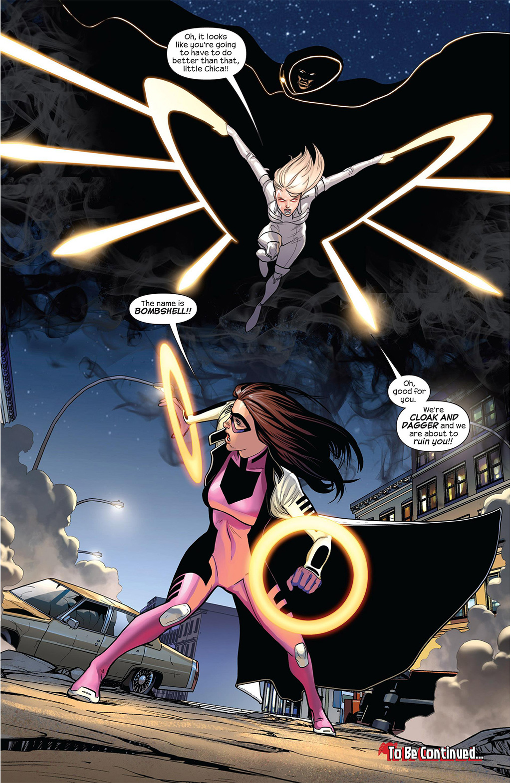 Créés en mars 1982, Cloak & Dagger (ou La Cape et l’Épée en Français… Ok, c’est horrible…), c’est Tandy Bowen et Tyrone Johnson respectivement Dagger et Cloak. Cloak a la capacité de créer un portail vers une dimension noire avec sa cape tandis que Dagger peut créer des lames de lumière avec ses doigts.