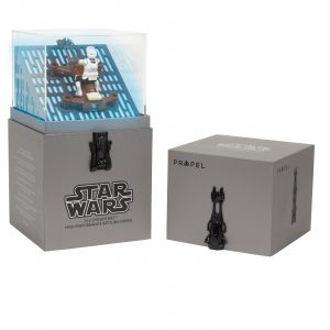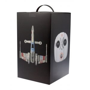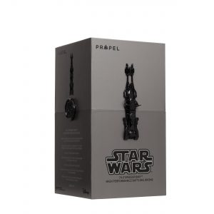 Cette première édition de quadricoptères est livrée dans un coffret scellé à la cire et orné d’un modèle 3D en relief sur le devant. Lorsque vous ouvrez le coffret, l’intérieur s’illumine et le thème de Star Wars résonne à travers les haut-parleurs intégrés. Chaque coffret et drone disposent d’un numéro de série unique.