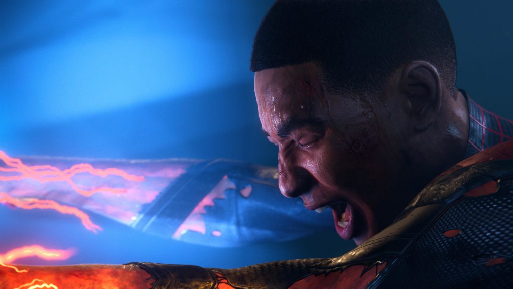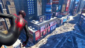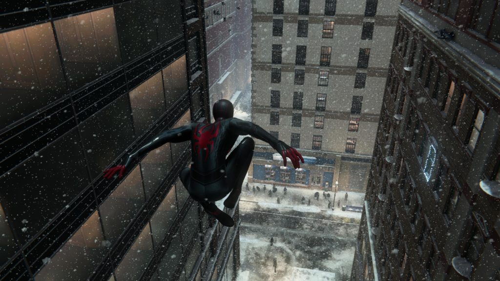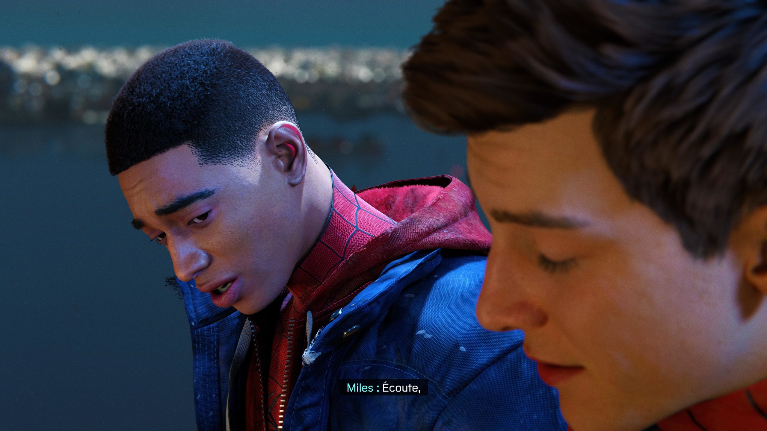 Mais quelle claque… Quelle puissance… Quelle différence avec la précédente génération. Dès les premières secondes, vous serez frappés par la rapidité de lancement de Marvel’s Spider-Man: Miles Morales grâce au SSD. Tout s’enchaîne, sans attente, sans écran de chargement qui vous couperaient de l’histoire : Non c’est ultra-rapide ! Une fois dans la partie, vous serez impressionnés comme moi par la beauté du jeu. Sur ma tv 4K Ambilight, j’ai pris une VRAIE claque graphique ! C’est sublime et parfois, lors de certaines scènes du jeu, on en vient même à trouver les images photo-réalistes ! Les textures sont précises, les couleurs puissantes, la profondeur de champ immense, la fluidité sans faille, les visages très expressifs… Je ne vais pas vous mentir, c’est une de mes meilleurs expériences sur console et clairement LE JEU à posséder sur PS5 quoi qu’il arrive. Parlons aussi du Ray-tracing qui est devenu un argument commercial dans cette guerre de la Next-Gen et qui, une fois sous les yeux, nous frappe par sa beauté et son intérêt ! Comment retourner à des versions SANS ?! Notons aussi que la manette DualSense nous plonge encore plus dans l’immersion. Se dégage du haut-parleur les bruits de toile et, lorsqu’on se balance entre les immeubles, on sent les gâchettes durcir car la pression sur la toile est forte. C’est juste fou !
