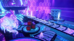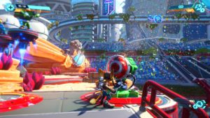 Dans Ratchet et Clank: Rift Apart, nous retrouvons donc nos 2 héros, Ratchet le dernier des Lombax et Clank le robot, dans une vie très paisible de héros galactique à Megalopolis. Voilà quelques temps que les missions se font de plus en plus rares et ils jouissent tristement d’une vie calme ou ils enchainent les shows médiatiques. Mais c’était sans compter Nefarious qui décide de s’inviter à la fête pour combattre le lombax. Une attaque qui va abîmer le Dimensionateur de Ratchet et endommager le tissu de l’espace-temps, générant des failles dimensionnelles dans l’univers tout entier. Un accident dramatique qui verra aussi nos deux amis séparés l’un de l’autre. S’engage alors une quête de Ratchet dans le temps et l’univers pour retrouver Clank et réparer le tissu de l’espace-temps. Une aventure que nous allons vivre avec Ratchet mais aussi Clank qui va découvrir une nouvelle représentante des Lombaxs : Rivet membre de la résistance.
