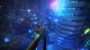 En terme de difficulté, le mode normal est très agréable à jouer car les difficultés rencontrées ne pourront vous bloquer. Le gameplay et les mécaniques de jeu étant suffisamment bien pensés pour qu’après 2-3 respirations de méditation, vous puissiez trouver la faille ou le bon chemin. Résultat, les heures de jeu s’enchainent sans vous en rendre compte et là encore, Insomniac Games a pensé à tout pour ne pas rendre le jeu trop linaire. Ainsi pour vous changer de Ratchet, vous serez amenez à diriger aussi Rivet dans l’autre dimension avec Clank. Mais là encore, le gameplay fourmille de « mini-jeux » pour donner une bouffée d’air frais au jeu. Il y a les phases de piratages avec Ratchet mais surtout les phases de puzzle à la Portal avec Clank ou vous devrez faire fonctionner vos méninges pour fermer les brèches. Résultat, il y a toujours quelque chose de nouveau pour nous surprendre comme un nouveau monde, une nouvelle arme, un nouveau jeu, un nouveau coup… N’oublions pas non plus l’excellente VF du jeu, parfaitement maitrisé et avec la présence de la très célèbre Brigitte Lecordier qui double Zurkon Junior. Un régal.